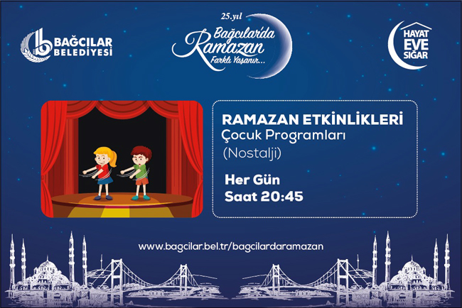 Bu kapsamda geçen sene düzenlenen Ramazan etkinliklerine ait görüntüler internet üzerinden ilçe sakinlerine ulaştırılıyor. Her akşam iftardan sonra saat 20.45’te küçükler için Ramazan Çocuk Programı; büyükler için de saat 22.30’da Ramazan Programları “Nostalji” adı altında yayınlanıyor. İsteyen herkes Bağcılar Belediyesi’ne ait www.bagcilar.bel.tr/bagcilardaramazan adresi üzerinden paylaşımlara ulaşabiliyor. Çocuklar gölge oyunları, Karagöz-Hacivat, tiyatro gösterileri ve yarışmaları izleyerek eğlenceli zaman geçiriyorlar. Büyükler ise sağlık, ilahiyat, tarih, edebiyat ve sanat gibi birçok alanda ünlü isimlerin yaptığı sohbetleri izliyor. Sanatçıların seslendirdiği Ramazan ayının manevi iklimini yansıtan Nat-ı Şerif, şiir ve ilahiler de dinlenebiliyor.