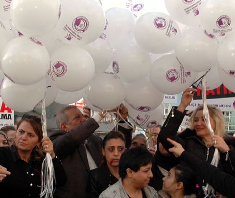 Yapılan konuşmaların ardından 'Şiddete hayır’ yazan onlarca balon havaya bırakılarak, şiddeti yok edeceğiz mesajı verildi. Daha sonra hep birlikte yuruyuşe geçen kadınlar, çevredeki vatandaşlara karanfil dağıttı.