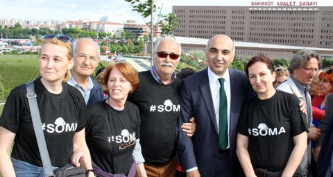Umut Uyanık’ın Soma’da hayatını kaybeden madenciler için yazdığı şiiri okumasının ardından bir konuşma yapan Bakırköy Belediye Başkanı Bulent Kerimoğlu, “Sayının önemi yok. İster 500 olsun, ister 5.000 olsun, ister 1 olsun ya da ister 301 olsun; resmen Soma’da rant uğruna maden emekçilerimizin canına katlettiler. Ben bunun adını kaza diyemiyorum. İhmaller zinciri yuzunden 301 emekçimizi ölume yolladılar. Dunyamızı aydınlatmak için her gun karanlığa inen yeraltı emekçilerimizin biz Bakırköy’de adlarını sonsuza kadar yaşatmak için 301 fidan diktik" dedi.