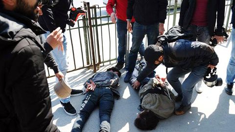 Şarkı söyleyip halay çeken eylemciler, polisin tum uyarılarına rağmen dağılmadı. Polis bunun uzerine gruba tazyikli su ile mudahale etti. Grup mudahalenin ardından ara sokaklara kaçarak dağıldı.
