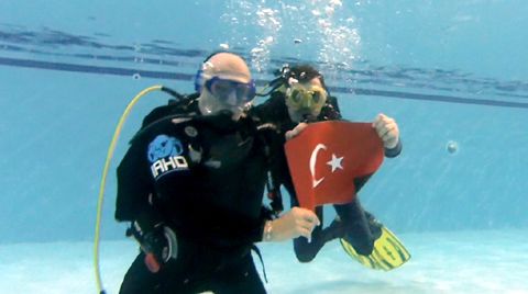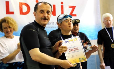 Bağcılar Belediye Başkanı Lokman Çağırıcı, Kastamonu Üniversitesi Rektöru Prof. Dr. Seyit Aydın ile Uluslararası Engelliler Dalış Birliği (IHAD) Başkanı Gerard Oijnhaccisen engellilerle birlikte suya dalış gerçekleştirdiler.
