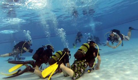 Bağcılar Belediyesi Kapalı Yuzme Havuzu’nda gerçekleştirilen etkinlik sırasında renkli göruntuler yaşandı. Anlamlı ve guzel bir etkinliğe katıldıkları için mutlu olduklarını ifade eden Gerard Oijnhaccisen, engelli yuzuculerin kıyafetlerini giyinmelerine de yardımcı oldu. Dalış takımını giyinen yuzuculer daha sonra havuza girerek dalış gerçekleştirdiler. Başkan Çağırıcı, Prof. Dr. Aydın ile yabancı konuklar suya dalış yapan engellilere eşlik ettiler. Engelliler suda dalışlarını gerçekleştirirken yakınları da havuzun kenarında onları heyecanla izlediler.