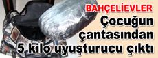 Bayram dolayısıyla denetlemelerini artıran Bahçelievler önleyici hizmetler ekipleri Yenibosna Kuleli Metrobüs durağı üst geçitine şüpheli bir şahsın çantasını aramak istedi. Şüpheli şahıs kaçmaya çalışmasına rağmen polis etkisiz hale getirdi. Çantasından 5 kilo 300 gram uyuşturucu çıkan 14 yaşındaki H.Ç. 'yı polis Çocuk Büro Amirliğine götürdü.