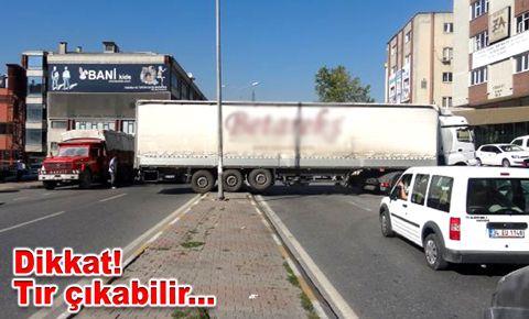 Merter Savaş Caddesi üzerinde iki şeridi birden kapatan tırın görüntüsü Akbaba Haber Ajansı’nın objektiflerine böyle takıldı…