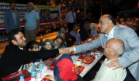 İftar saatinden önce Gungören Belediye Başkanı Şakir Yucel Karaman, masaları dolaşarak, vatandaşlarla tek tek tokalaştı.