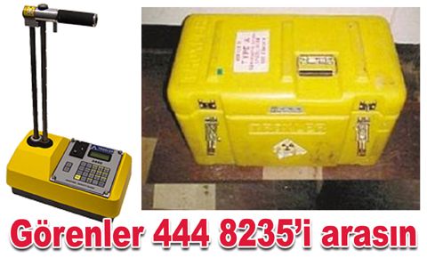 Zeytinburnu’nda hırsızlar tarafından bir inşaat şantiyesinden çalınan ve Radyoaktif kaynak bulunduran yoğunluk-nem ölçüm cihazı TAEK’i (Türkiye Atom Enerjisi Kurumu) harekete geçirdi. Bu gün TAEK resmi sitesinden yapılan yazılı açıklamada resmi de yayınlanan ölçüm cihazını gören veya bulanların kuruma başvurması istendi.