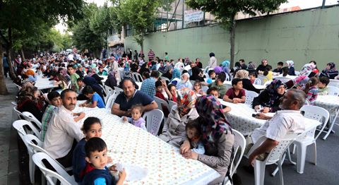 Barbaros Mahallesi ile Kazım Karabekir Mahallesi’nde duzenlenen iki ayrı iftar programında 5 bin ilçe sakini aynı sofrayı paylaştı. Bağcılar Belediye Başkanı Lokman Çağırıcı, yaptığı konuşmada 11 ayın sultanı Ramazan ayında Bağcılar’ın huzur dolduğunu söyledi. Mahalle iftarlarının komşuluk duygularını geliştirdiğini ifade eden Çağırıcı, “Cenabı Allah’tan (c.c), tum Muslumanların gunahlarımızdan arınmış olarak bayrama kavuşmasını niyaz ediyorum." diyerek dua yaptı. AK Parti İlçe Başkanı İsmet Özturk de ulkemizin 81 vilayetinden ilçe sakininin katıldığı iftar programlarının aynı mahallede oturan komşuları bir sofrada buluşturduğunu vurguladı. Özturk, “Bu ayın ulkemize ve milletimize hayır getirmesini diliyorum." dedi. İftar programına katılan ilçe sakinleri, Demircan Camii İmam Hatibi Suleyman Akpınar’ın duasına birlikte 'amin’ dediler.