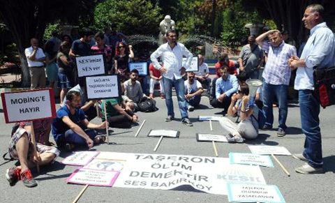 Bakırköy Prof. Dr. Mazhar Osman Ruh ve Sinir Hastalıkları Eğitim ve Araştırma Hastanesi (BRSHH) Başhekimlik binası önunde toplanarak oturan SES Bakırköy Şubesi uyeleri, "Taşeron ölum demektir" yazılı pankart ve "Sağlıkta taşeron ölum demektir", "SES'imize SES ver", "Savaşa değil sağlığa butçe" dövizleri taşıdı. Grup sık sık, "Taşeron çalışma yasaklansın", "Susma haykır guvence haktır", "Kurtuluş yok tek başına, ya hep beraber, ya hiçbirimiz" şeklinde sloganlar attı.