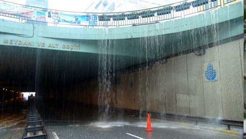 İstanbul'da ikindi vakti bastıran yağmur birçok noktayı göle çevirdi. Yenibosna'da E-5'i su basması nedeniyle trafik durdu. Yan yoldan Topkapı istikametine gidemeyen araçlar ters yöne ilerledi ve ana yola çıktı. Havaalanının bahçe duvarını aşarak E-5'e taşan çamurlu su şelale göruntusu oluşturdu.