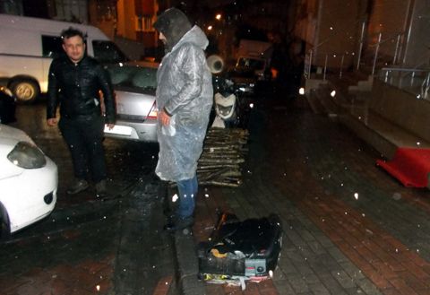 Bomba ihbarı ile kısa surede olay erine gelen polis ekipleri, valizin içinde bomba olabileceği yönunde çevredeki binalarda oturanların guvenliği için ekip aracından anons yaparak, kar yağıyor diye kimsenin çocuklarını dışarı can guvenliği acısından çıkarmaması yönunde uyarıda bulundu.