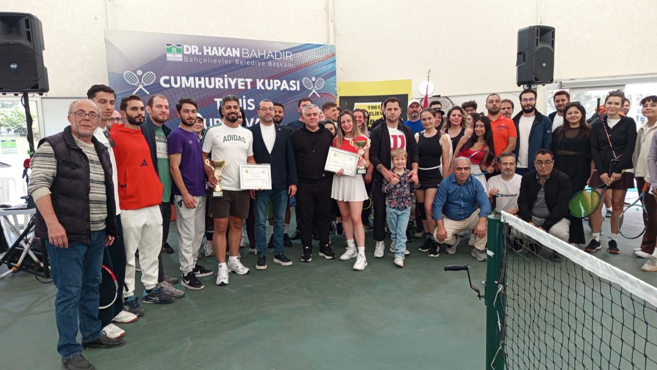 Türkiye Tenis Federasyonu’nun gözetimi altında düzenlenen Cumhuriyet Kupası Tenis Turnuvası’nda T200 Masters Kadınlar’da Sevgi Öztürk, T500 Masters Erkekler’de ise Erdal Karan şampiyon oldu. Yenibosna Spor Parkı’nda düzenlenen ödül törenine Bahçelievler Belediye Başkan Yardımcısı Ali Barış Demir, Bahçelievler Spor İlçe Müdürü Ali Muzaffer Demir, Yenibosnaspor Kulübü Başkanı Mustafa Açıkgöz, Yenibosnaspor Kulübü Başkan Yardımcısı Fethi Aydın, şampiyonların tenis hocası İbrahim Abla, sporcular ve yakınları katıldı.